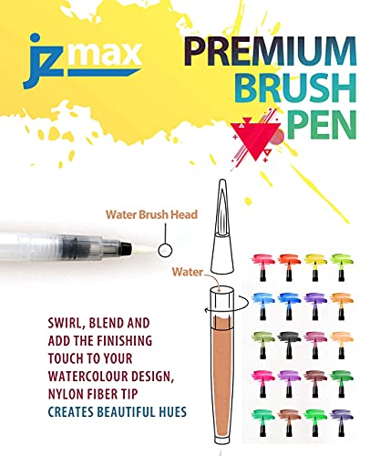 JZMAX Art Supplies - Pennelli per acquerello, 20 penne ad acquerello e 1 pennello, per calligrafia con punta in nylon morbido e flessibile, set di penne colorate, acquerello, penne artistiche