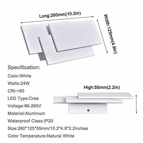 K-Bright 24W Lampada da Parete Applique da Parete Interni Moderno LED Bianco naturale 4000K Lampada da Muro per Soggiorno, Camera da letto, Corridoio, Scale (Bianca)