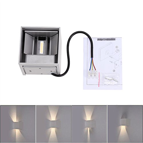K-Bright 12W Lampada da Parete Illuminazione,Grigio Alluminio Lampada Esterna da Parete Applique,Bianco Caldo IP65 Su e Giù design Lampada Muro,230V,10X10X10CM Luce notturna a LED Per Camera da letto, Soggiorno, Scala, Corridoio