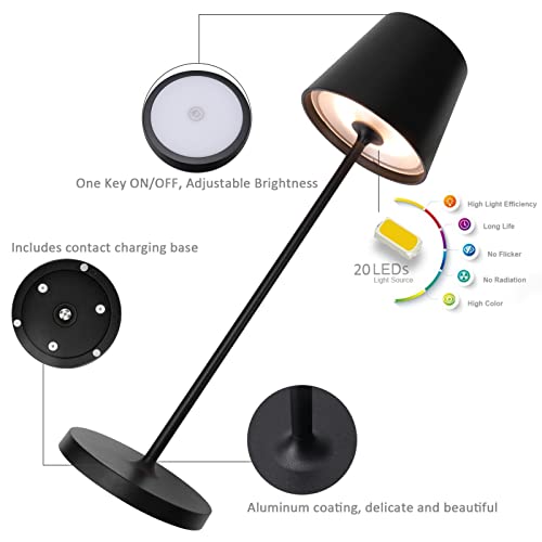 K-Bright lampada da tavolo ricaricabile in alluminio | 240LM | 3000K luce bianca calda Lampada da scrivania senza fili | interni/esterni Lampada da tavolo con base di ricarica a contatto (nero)