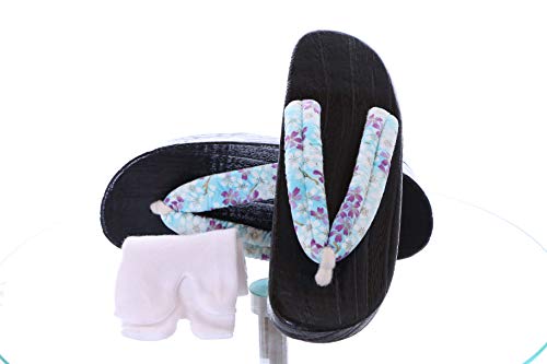 K-G-61-3 - Sandali da donna Sakura con fiori, in legno nero, originali giapponesi Geta, Kimono Geisha, multicolore, 38 EU