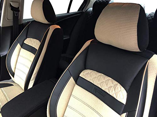 K-Maniac - Set di coprisedili universali compatibili con Mitsubishi ASX, Colore Nero/Beige, Set di coprisedili Anteriori, Accessori per Auto, Accessori per Auto, in Ecopelle, V2513142