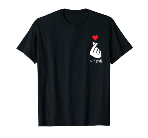 K-Pop Saranghae Dito Cuore Simbolo Della Mano Coreano Hangul Maglietta