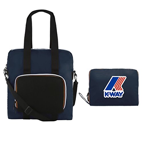 è chiusa con zip K-Way e doppio puller personalizzato K-Way di colore nero. I manici e la tracolla sono in tape di poliestere nero. La borsa inoltre presenta il logo K-Way stampato ed è dotata di QR label interna.