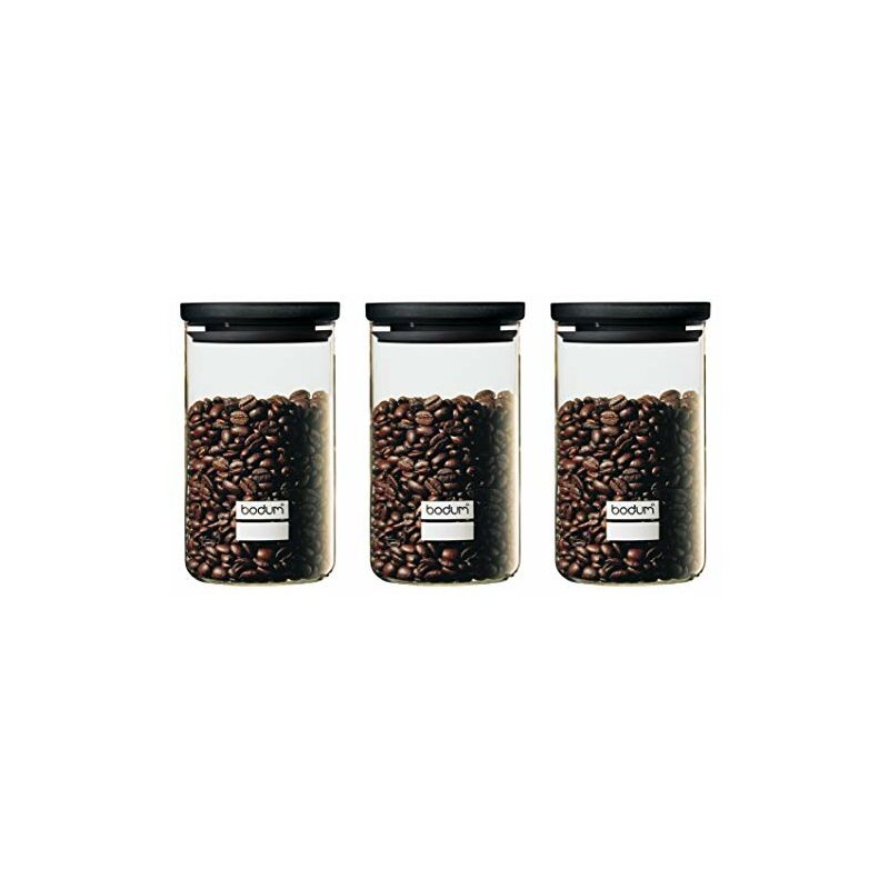 Bodum K8600-01 - Set di 3 barattoli in Vetro, 1 l, Coperchio in plastica 1,0 lSize: 1,0 l
