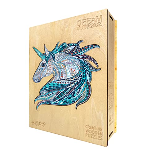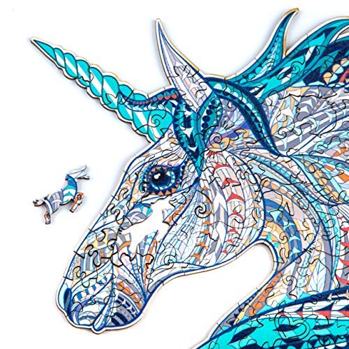 KAAYEE - Puzzle in legno con testa di unicorno, Jigsaw Wood,giochi sviluppo intellettuale, puzzle per adulti, giocattolo creativo, esercizio creativi (grandi: 43,4 x 39,8 cm-303 pezzi)