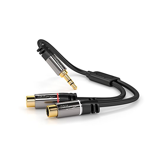 KabelDirekt - 0,2m Adattatore Cavo (1 Connettore 3,5 mm Jack Maschio su 2 Connettori RCA Femmina, Coassiale Audio Stereo, Cavi RCA da 3,5 mm), PRO Series