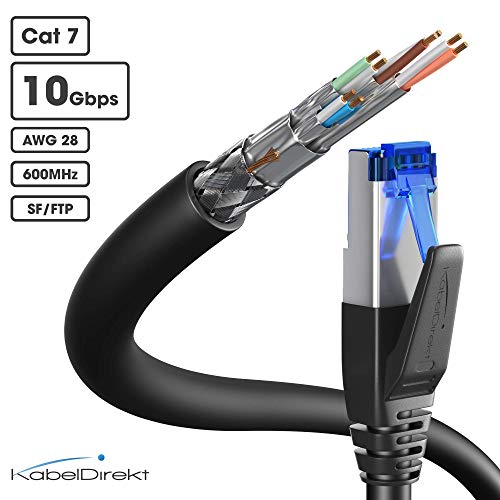 KabelDirekt - Cavo Ethernet CAT7 con tripla schermatura ultra sicura - 1 m - Cavo internet e cavo LAN (cavo di rete, 10Gbit/s per la massima velocità della fibra ottica, RJ45, per Xbox/PS5, nero)
