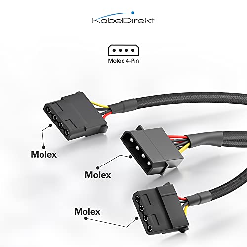 KabelDirekt - 30cm Cavo Molex a 4-Pin Molex su cavo a Y 2x 4 Pin Molex (per il collegamento di dischi rigidi (SSD, HDD) e lettori (CD, DVD, Blu-Ray))