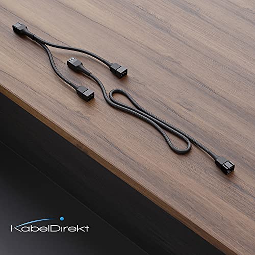 KabelDirekt - 90cm Cavo di Prolunga Cavo Ventola a 3 Pin + 15cm Ventola a 3 Pin su 2X Cavi a Y Ventola a 3 Pin (per Il Collegamento di ulteriori ventole)