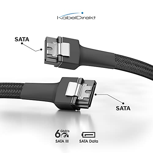 KabelDirekt - 3 Cavi SATA-3 6 GB/s - 60 cm, Diritto (Cavo Dati, 6 Gbit/s, SATA-III/Serial-ATA, connettore a L, Set di 3 Cavi, collega Dischi fissi/SSD/unità alla Scheda Madre, Nero)
