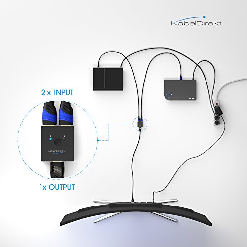 KabelDirekt - Switch HDMI (bidirezionale,/Splitter, Full HD 1080p, 4K Ultra HD 2160p, 3D, CEC, HEC, Deep Color, gestione di 2 segnali di ingresso su un dispositivo di uscita),
