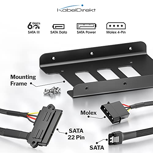 KabelDirekt - Telaio di montaggio e Cavo elettrico (22 Pin SATA su cavo elettrico 4 Pin Molex e cavo dati SATA 3 6 Gbit/s 8x vite, per il collegamento e il montaggio di dischi rigidi da 2,5)
