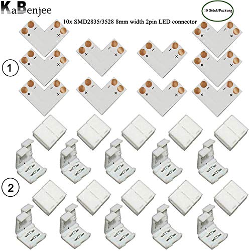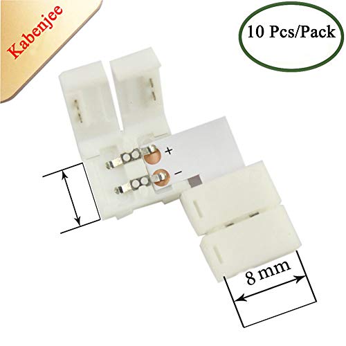 Kabenjee 2 pin SMD2835/3528 8 mm di larghezza. Connettore per strisce di luci al led a forma di L, tinta unita, connettore angolare a 2 poli a led con angolo di 90°, strisce al led a forma di L veloci da applicare (10 pezzi a confezione)