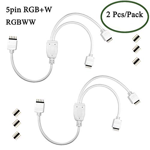 Kabenjee 2X 5Pin RGBW LED Striscia da 1 a 2 sdoppiatore Connettore per SMD5050 10mm e 12mm larghezza del nastro di luce, 5pin Luce LED Strip uno a due adattatore del connettore del cavo (2 pc / pacchetto) Cavo LED Banda Splitter