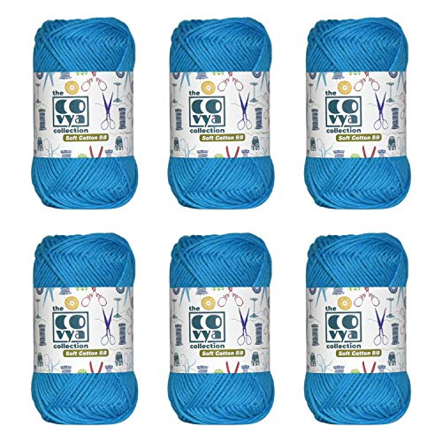 KACHVI 100% Cotone 8/8 Ply Yarn Thread Balls per Maglieria all'Uncinetto Home Decor Scarf Tassel Guanti Abbigliamento Progetti Fatti a Mano, Confezione di 6 Colori Solidi, (Butterfly Blue)