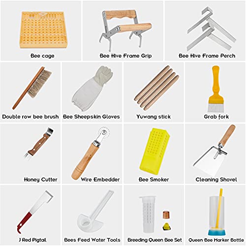 【Deluxe 15 pezzi di forniture per apicoltura】】: 15 pezzi accuratamente selezionati per coprire le esigenze di un nuovo e affermato apicoltore, questo kit deluxe include tutti gli strumenti indispensabili per lavorare sull'alveare, il che lo rende più facile e piacevole.
