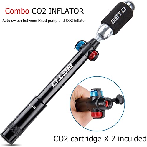 【 TORNA A GUIDARE VELOCEMENTE 】 - La CO2 fornisce un rapido colpo d'aria e la pompa è ottima per rabboccare la pressione dell'aria o come ultima risorsa quando sei là fuori a vivere al limite. Compatibilità con valvole Presta e Schrader, con cartuccia filettata 2x16g e manicotto isolante.