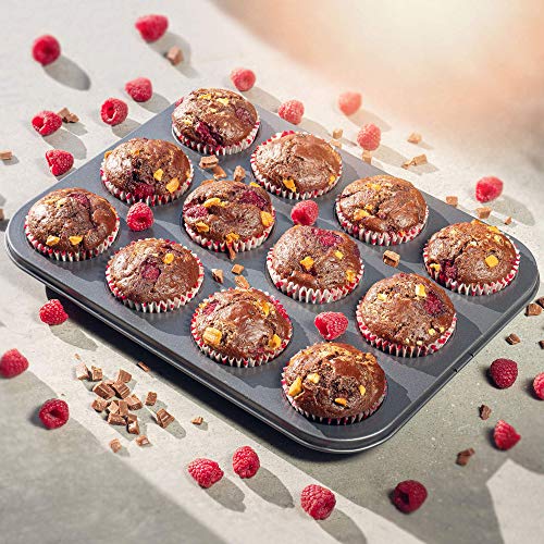 Kadax Muffinform, teglia per 12 muffin, 35 x 26,5 cm, realizzato in acciaio, archi di grandi dimensioni,teglia flessibile e non -inumurnabile e flessibile per la pasticceria dolce