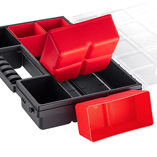 KADAX Organizzatore, cassetta degli attrezzi in plastica, rivista di piccole parti con coperchio trasparente, rivista di piccole dimensioni in diverse dimensioni, scatola (28x18 cm/3 pezzi)