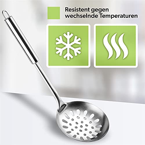 KADAX Schiumarola in acciaio inossidabile, Mestolo per Schiumarola, Mestolo filtrante, Schiumarola con manico ovale, Mestolo con Occhiello per appenderlo, Cucchiaio filtrante