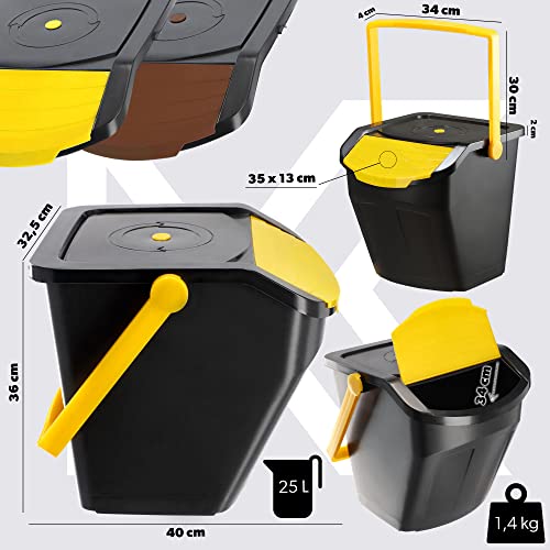 KADAX Secchio per il riciclaggio, 25 l, con coperchio, set di pattumiere per raccolta differenziata leggera, per rifiuti organici, carta, vetro (2 pezzi da 25 l), Marrone