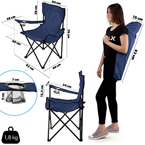 KADAX Sedia pieghevole, leggera, da campeggio, pieghevole, con braccioli e portabevande, sedia da pesca, sedia da viaggio, pratica sedia da pesca, sedia da picnic (blu)