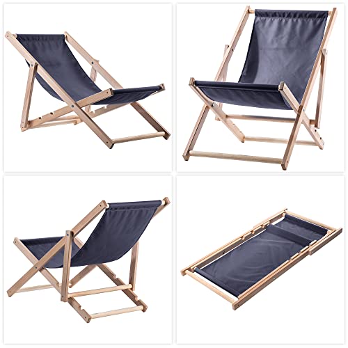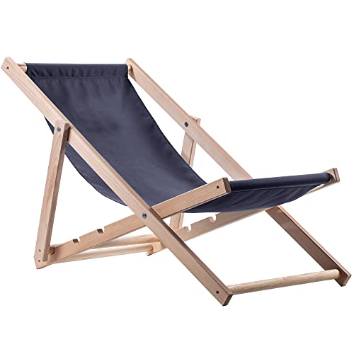 KADAX - Sedia a sdraio, sedia da spiaggia in legno, portata fino a 120 kg, in legno di faggio, sedia pieghevole (blu scuro)