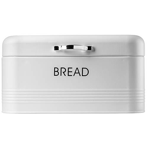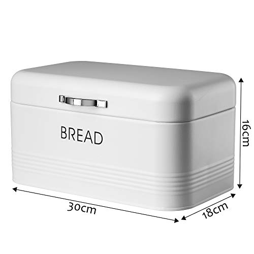 KADAX Box di pane, spazzolato con scatola di pane in acciaio, 30 x 18 x 16 cm, un ampio contenitore di pane con coperchio denso, per una più lunga freschezza del pane (bianco)