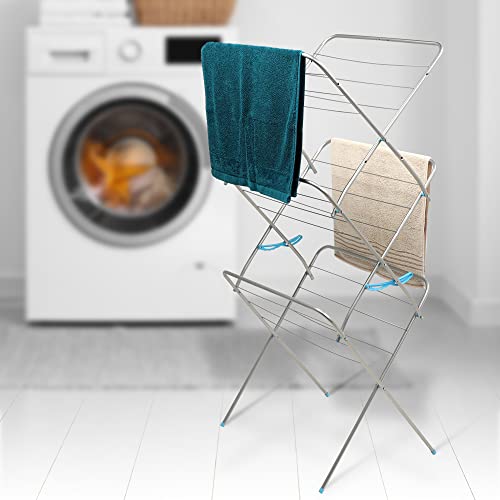 Ampia area: l'essiccatore verticale per lavanderia è costituito da tre livelli, la cui superficie asciutta totale è di 20 m. Hanno abbastanza spazio per appenderlo, in modo che i vestiti possano asciugare senza pieghe.