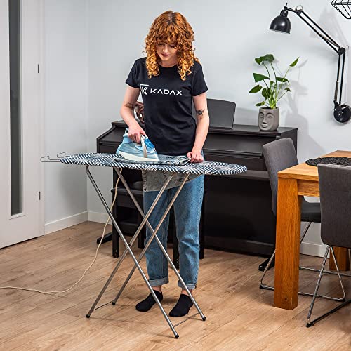 KADAX Asse da stiro con scomparto, 104 x 30 cm, con ripiano allungabile e supporto per ferro da stiro, compatto con base in schiuma (eclpise)