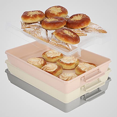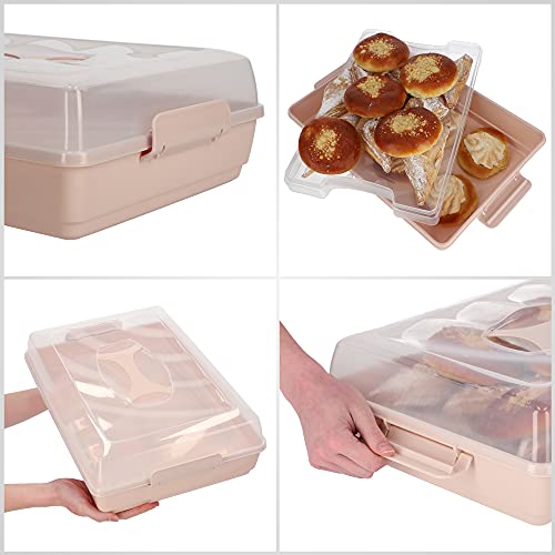 KADAX Box Torta cochio, 44 x 30 x 12,5 cm, Contenitore Torta di plastica, Scatola di Trasporto con Manico, Forma della scatolamuffin Torta, Rettangolare, Scatola Alimentare (Rosa)