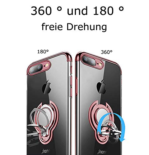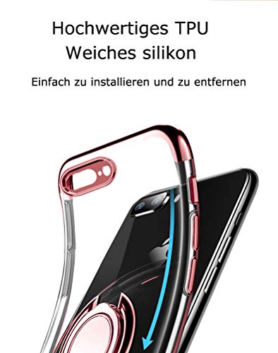 Kadixini - Custodia Morbida in Silicone, Ultra Sottile, Bumper in TPU con Supporto Magnetico per Auto ad Anello a 360 Gradi, Anti-Impronte, AntiGraffio (iPhone 7 plus / iPhone 8 plus, Oro Rosa)