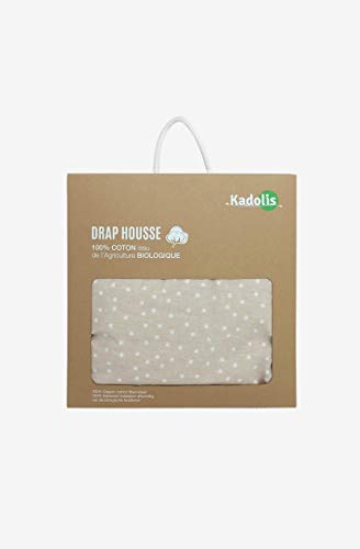 Kadolis Lenzuolo con angoli elasticizzati, in cotone biologico, 60 x 120 cm, colore: beige
