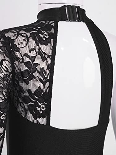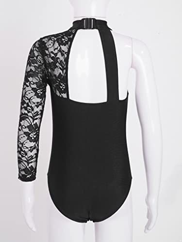 Kaerm Tuta da Ginnastica Artistica a Manica Lunga Bambine Body da Ballerina Monospalla Vestito da Balletto Ballet Tinta Unita Ragazze Vestiti da Ballo Latino Jazz Dancewear Nero 9-10 Anni