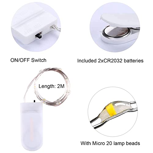 Kafeiya 8 Pezzi Luci Stringa LED,20 LED 2M Mini Lampada a Fili di Rame Bianco Caldo,Stringa Luci LED a Batteria,Luci Stringa,per Esterni,Feste,Natale,Decorazione di Nozze,Matrimonio, DIY,Festa