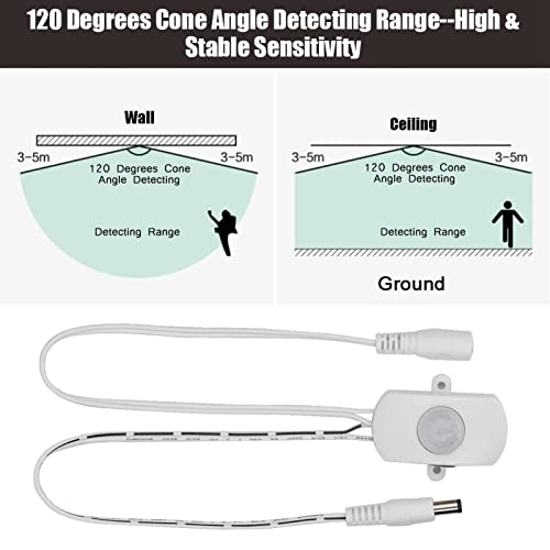 Kafuty Sensore di Movimento Interruttore di Illuminazione DC 6-24V Rilevatore di Movimento Luce LED Infrarossi Interruttore di Induzione Automatico (2-360s Regolabile) (Bianco)