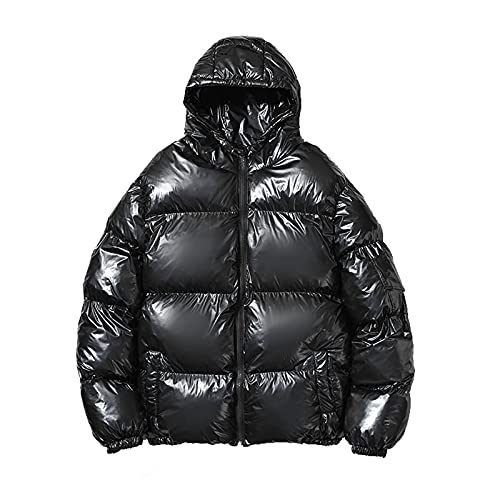 KAGAYD Giacca invernale da uomo, con colletto alto, lucido, spessa, con zip sciolta, elasticizzata, antivento, con pratiche tasche, giacca per le mezze stagioni, Nero, XXL