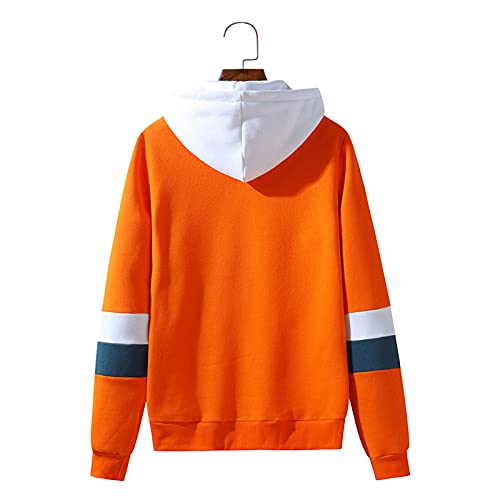 KAGAYD Top da Uomo a Maniche Lunghe a Blocchi di Colore alla, Girocollo, con Coulisse, Felpa con Cappuccio Maglia (Orange-1, L)