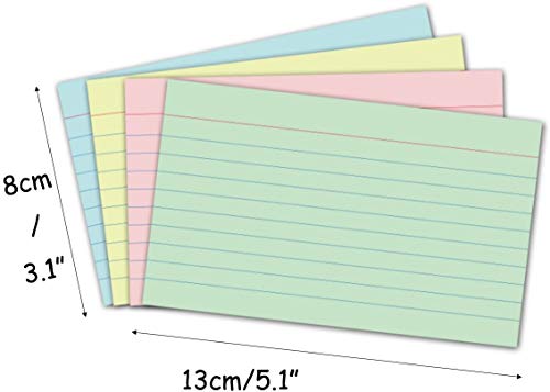 KAHEIGN 1200 Pezzi Carte da Record Rigate, 127x 76mm Schede di Revisione Colorate Schede Flash Schede in Bianco Rigate Rigate Schede Indice (3 X 5 Pollici)