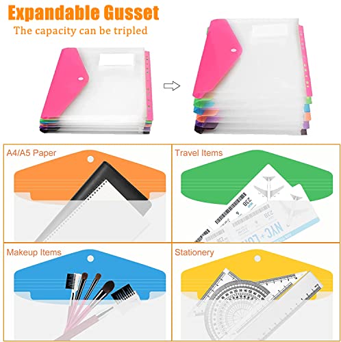 KAHEIGN 16 Pezzi Tasche Perforate Espandibili, 8 Colori Portafogli in Plastica A4 File di Documenti Cartelle Popper Raccoglitore ad Anelli A4 con Chiusura a Scatto, Tasca per Etichetta e Anello