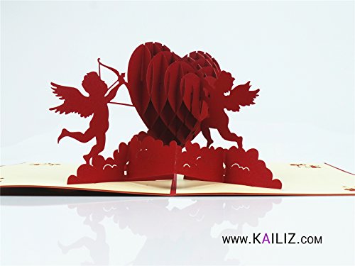 Kailiz 3D rosso Cupid cuore di San Valentino con carta di nozze di compleanno per lui/lei Anniversary Gift Handmade Kirigami Paper Art Blank 3D biglietto d' auguri