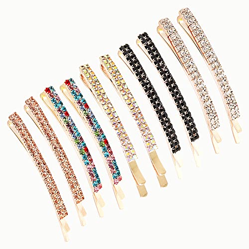 Kaimeilai Forcine con strass, 10 pezzi Accessori per capelli con strass temperamento alla moda Forcina in cristallo Fermaglio per capelli con strass a doppia fila per donne e ragazze (Multicolore)