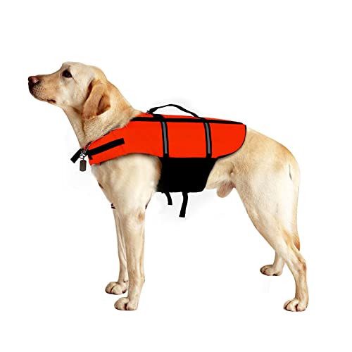 Kaimeilai Giubbotto di Salvataggio per Cani, Cani/Animali Domestici Costumi da Bagno Estivi Giubbotto di Salvataggio Regolabile Riflettente, Arancione, L