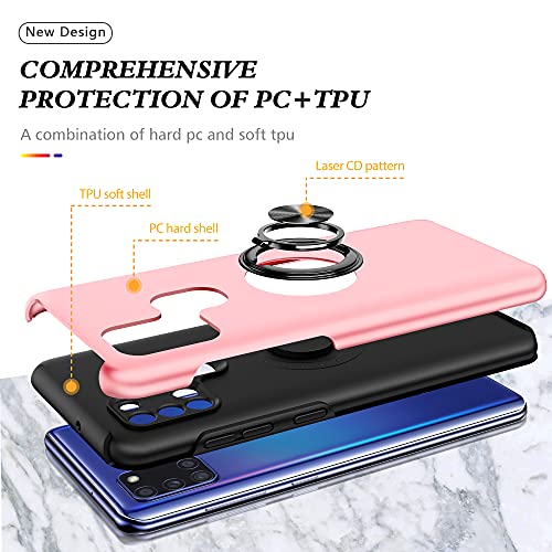 Kainevy Cover Samsung A21s Antiurto Rigida magnetica Con Anello Supporto, Custodia Samsung Galaxy A21s Cover Silicone Resistente Slim Elegante Belle Case Per Donne e Uomini (Rosa)