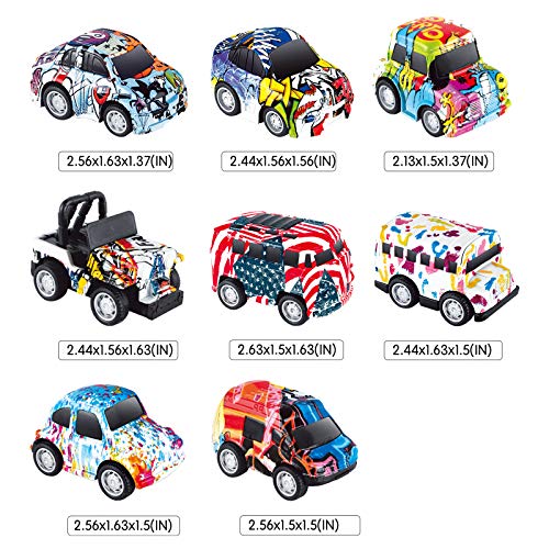 KAINSY Macchinine Giocattolo, 8 Pezzi Giocattolo Pressofuso Mini Auto della Set Metallo Tirare Indietro Veicoli a Frizione per Bambini di 3-12 Anni Ragazzi Ragazzi Bambini, Stile Graffiti