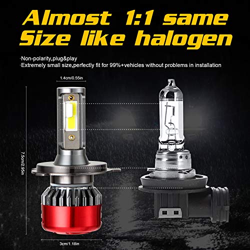 Kairiyard 2x 55W 9000LM LED H4 Faro 6000K Lampada Auto Automatica Lampadina Conversione Lampadina H4 Fendinebbia HI Fascio DC 9-18V Lega Alluminio Prestazione Dissipazione Calore Guida Sicura