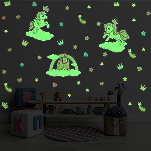 KAIRNE Luminosi Adesivi Murali per Camera Bambini,Stella Adesive da Parete Fluorescenti,Unicorno Adesivo Murale,Sticker Murali per Camera da Letto Ragazze,Rosa Decalcomanie per Asilo Nido Aula