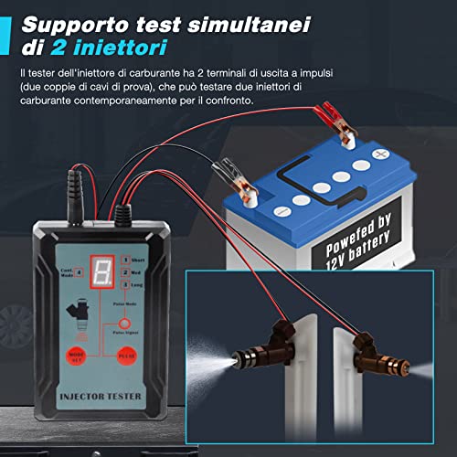 KAISAL 12V Tester per iniettori di Carburante Supporta Il Test simultaneo di 2 iniettori detergente per iniettori del Carburante con 2 adattatori per la Pulizia degli iniettori