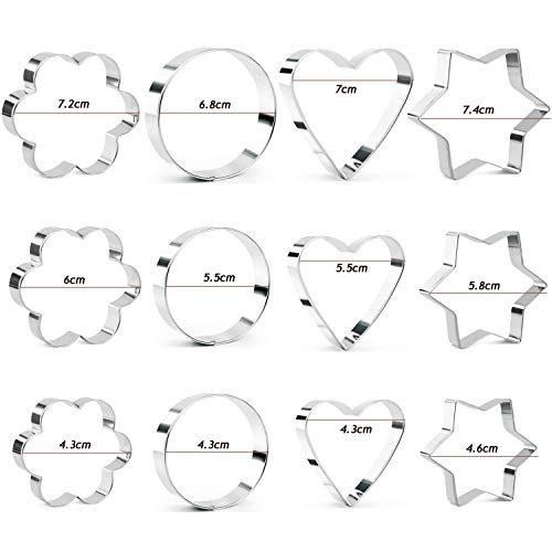 KAISHANE Formine per Biscotti 12 Pezzi (Stella Cuore Cerchio Fiore) Acciaio Inossidabile Stampi per Biscotti Cuore per Creare Biscotti,Tortine,Pasticcini e Glasse